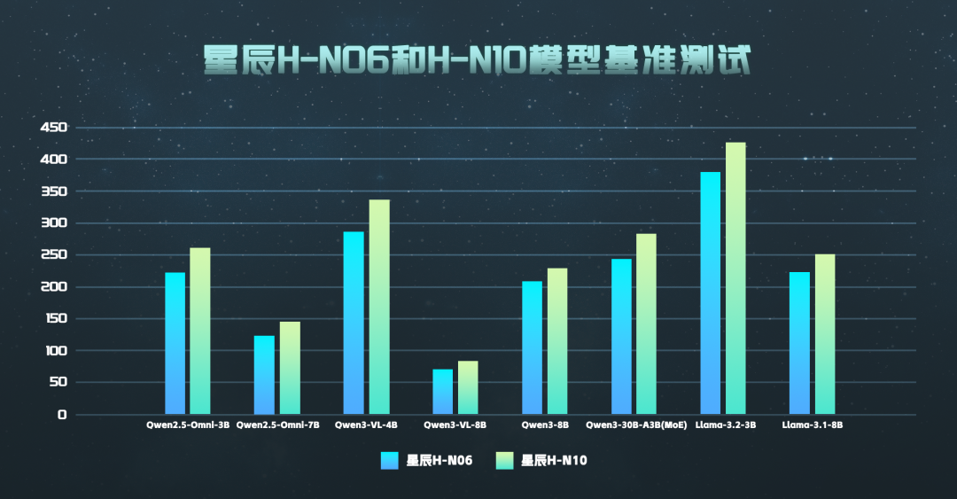 作为星辰系列高算力计算平台,星辰H-N06、H-N10在多种基础大模型上表现出色,相比星辰M系列产品,性能提升可达到2倍以上;模型的快速部署和极致的性能进一步推进了产品的场景化验证,加速星辰系列从技术落地到规模化应用的进程。